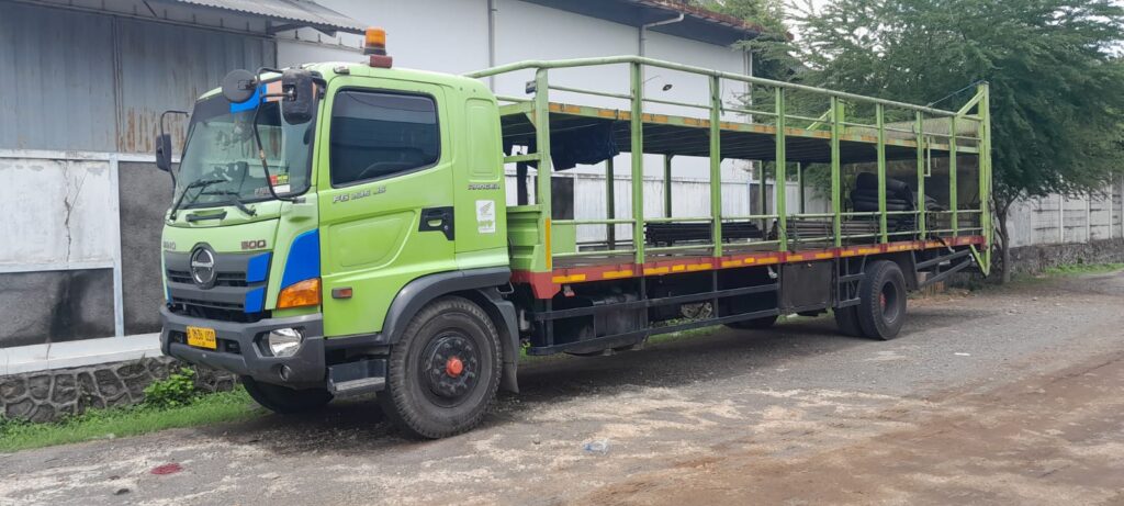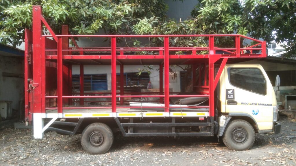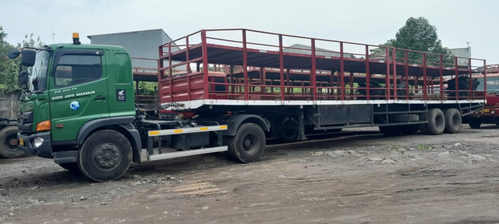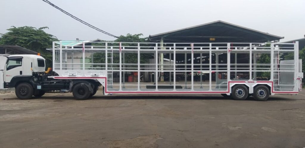 A Double-Deck Trailer Truck is a trailer truck that has 14 tires and can carry cargo with 2 floors on 1 truck.